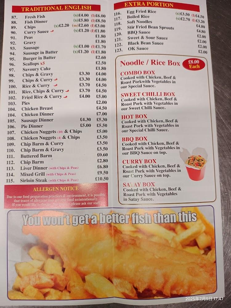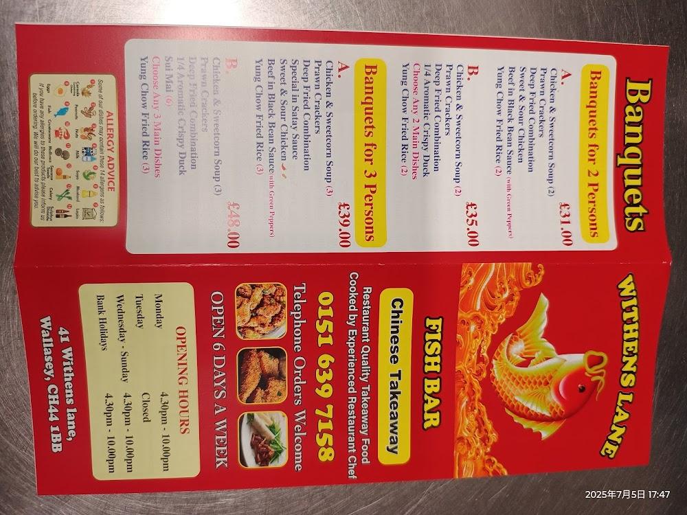 Withens Lane Fish Bar is located in Wallasey, easily accessible for locals and visitors alike. This charming eatery opened its doors recently, offering both takeaway and dine-in options to accommodate busy lifestyles. The establishment offers wheelchair-accessible facilities, ensuring that everyone can enjoy a meal here without hassle. Customers praise the welcoming atmosphere, suitable for families and individuals alike, making it an excellent choice for dinner. Whether ordering a late-night snack or a quick bite, this spot stands out for its unwavering quality and friendly service. The nearby free street parking adds to the convenience, allowing patrons to pop in without worry. With a commitment to community, Withens Lane Fish Bar is perfect for both casual diners and those looking for a satisfying meal to-go.
